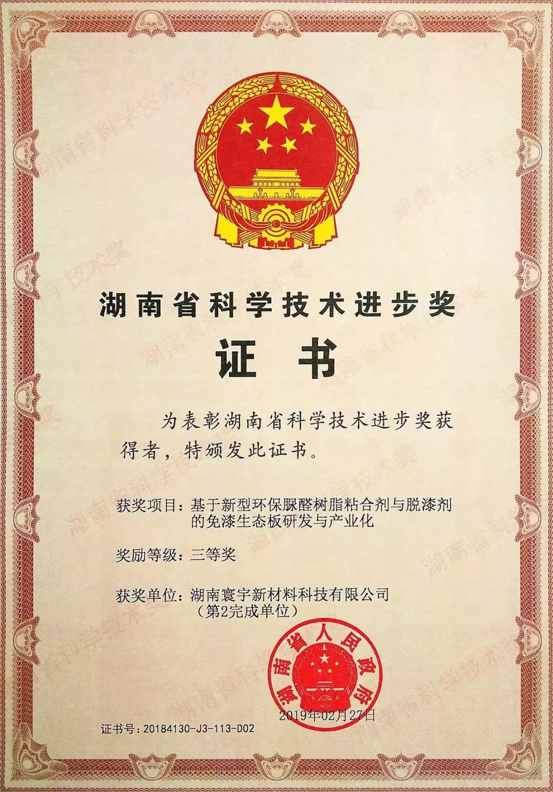 目前,中國已躍居“材料大國”,形成了全球門類最全、品種與產量規模第一的材料產業體系,培養了一大批高素質人才,一些高端關鍵新材料的研發水平有力支撐了國民經濟快速發展。其中,內陸省份湖南新材料產業發展迅速,總量規模已躋身全國第一方陣。湖南寰宇新材料科技股份有限公司,致力于為人類健康做貢獻,秉承“以質量求生存、以誠信謀發展“的經營宗旨,堅持”環保、低碳、綠色、健康“消費理念。通過不斷研發,獲多項國家高新技術國家專利,所有產品均使用公司自行研發環保專利膠水(專利號:20140115958.5),寰宇板材系列產品甲醛釋放量符合歐美E0級標準!